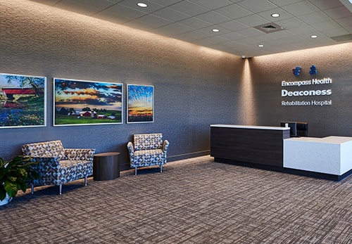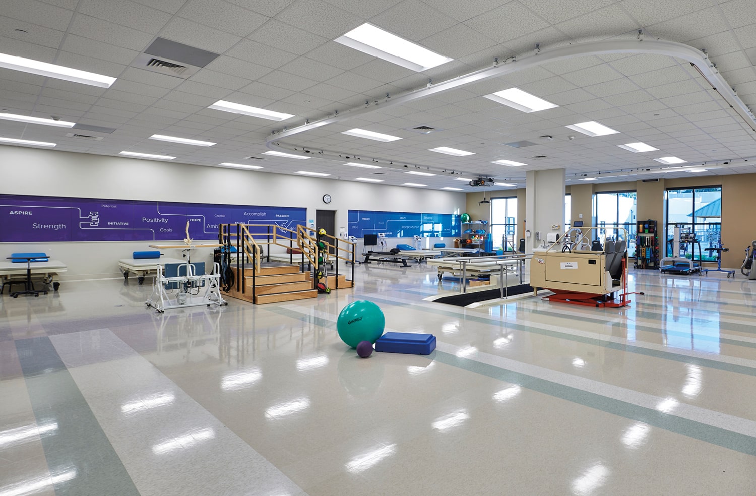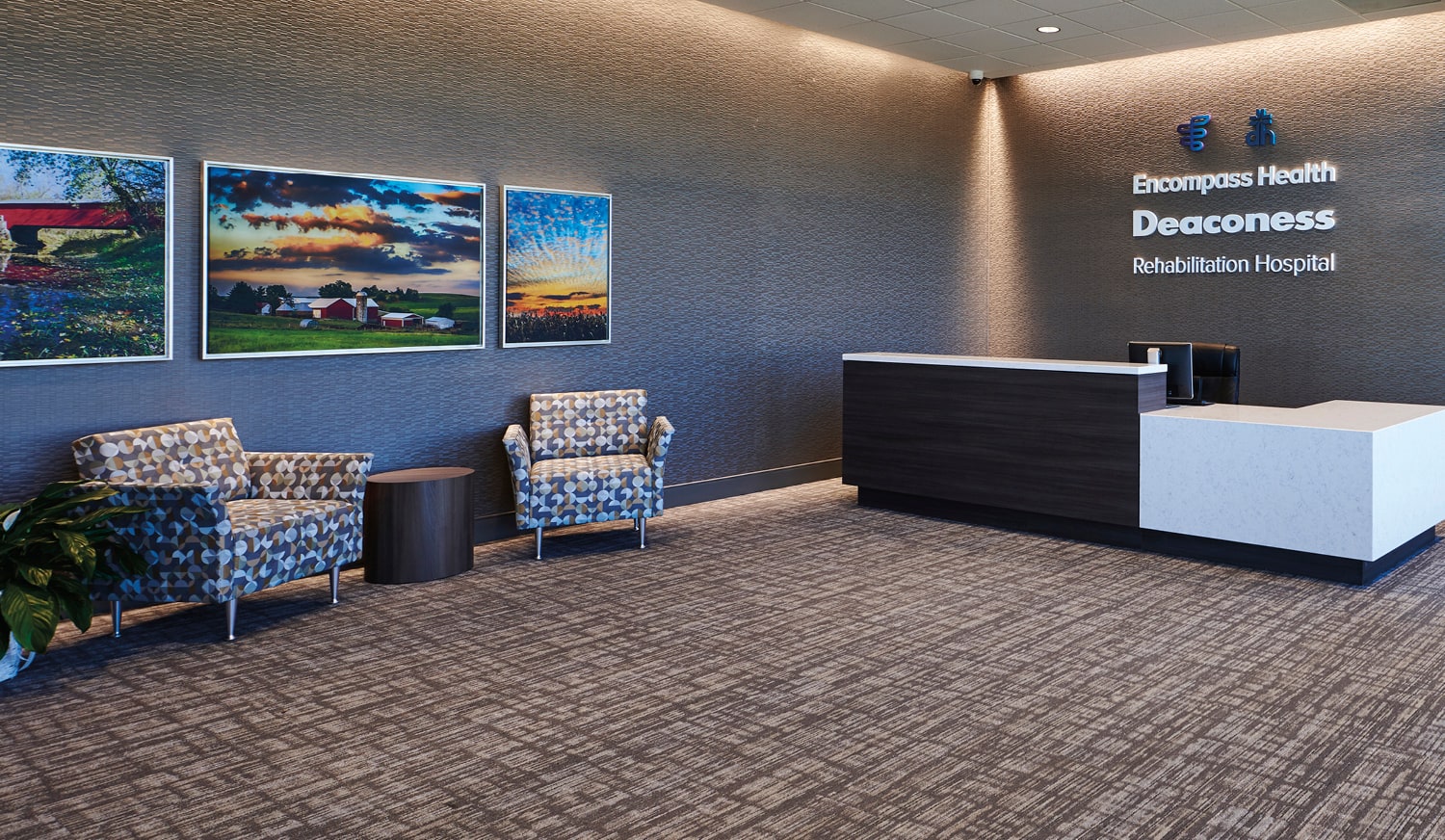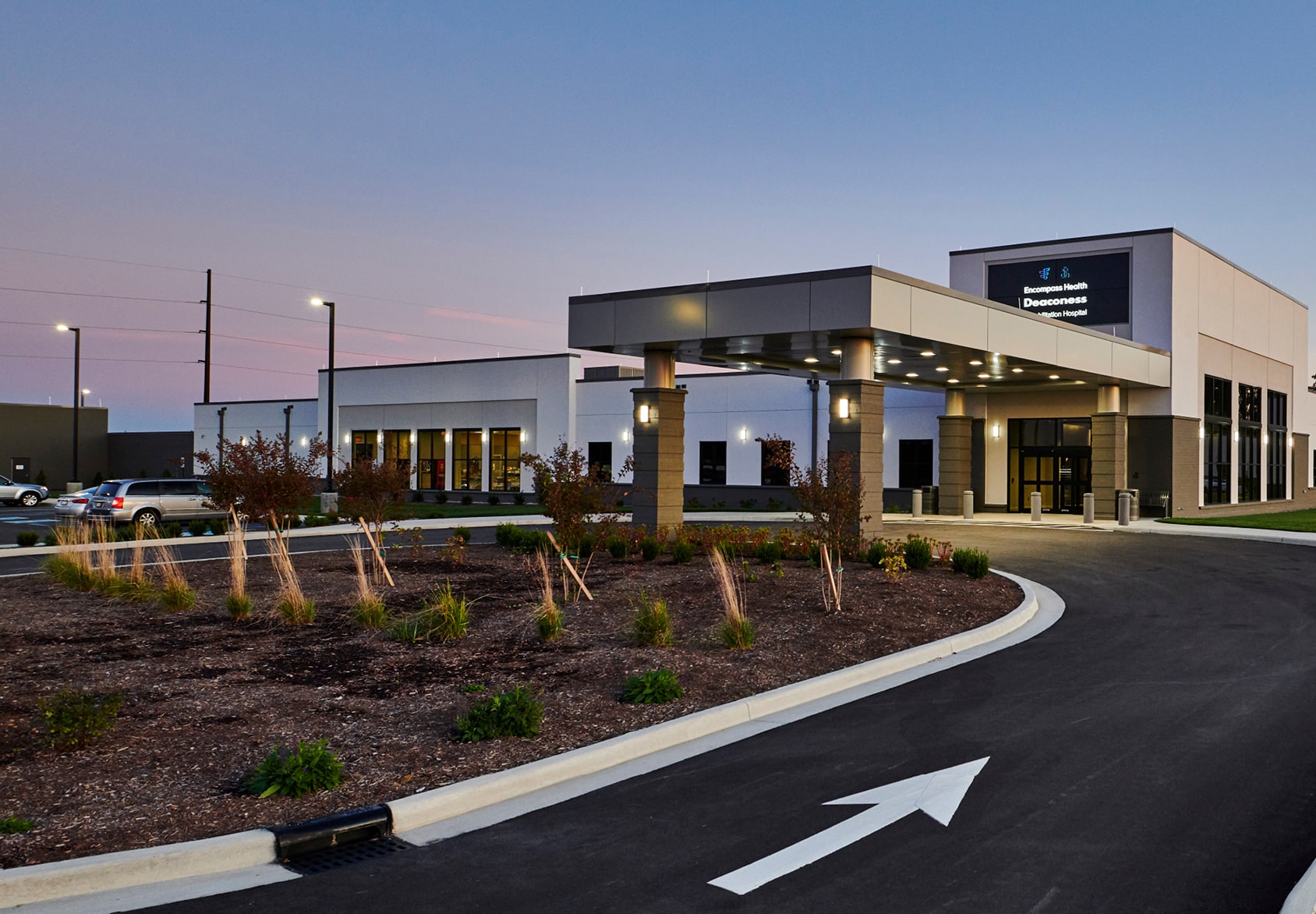 The Encompass Health Deaconess Rehabilitation Hospital provides essential therapeutic services to help patients regain independence after life-changing illnesses or injuries. M. J. Harris constructed this single-story, 80-bed replacement hospital with a focus on the patient experience. The facility features many restorative amenities, including a therapy gym, therapy courtyard, kitchen and dining spaces, administration areas, and cutting-edge rehabilitation technologies. With a well-equipped building, the hospital is now able to effectively administer powerful and intensive physical rehabilitation services to patients who need it the most