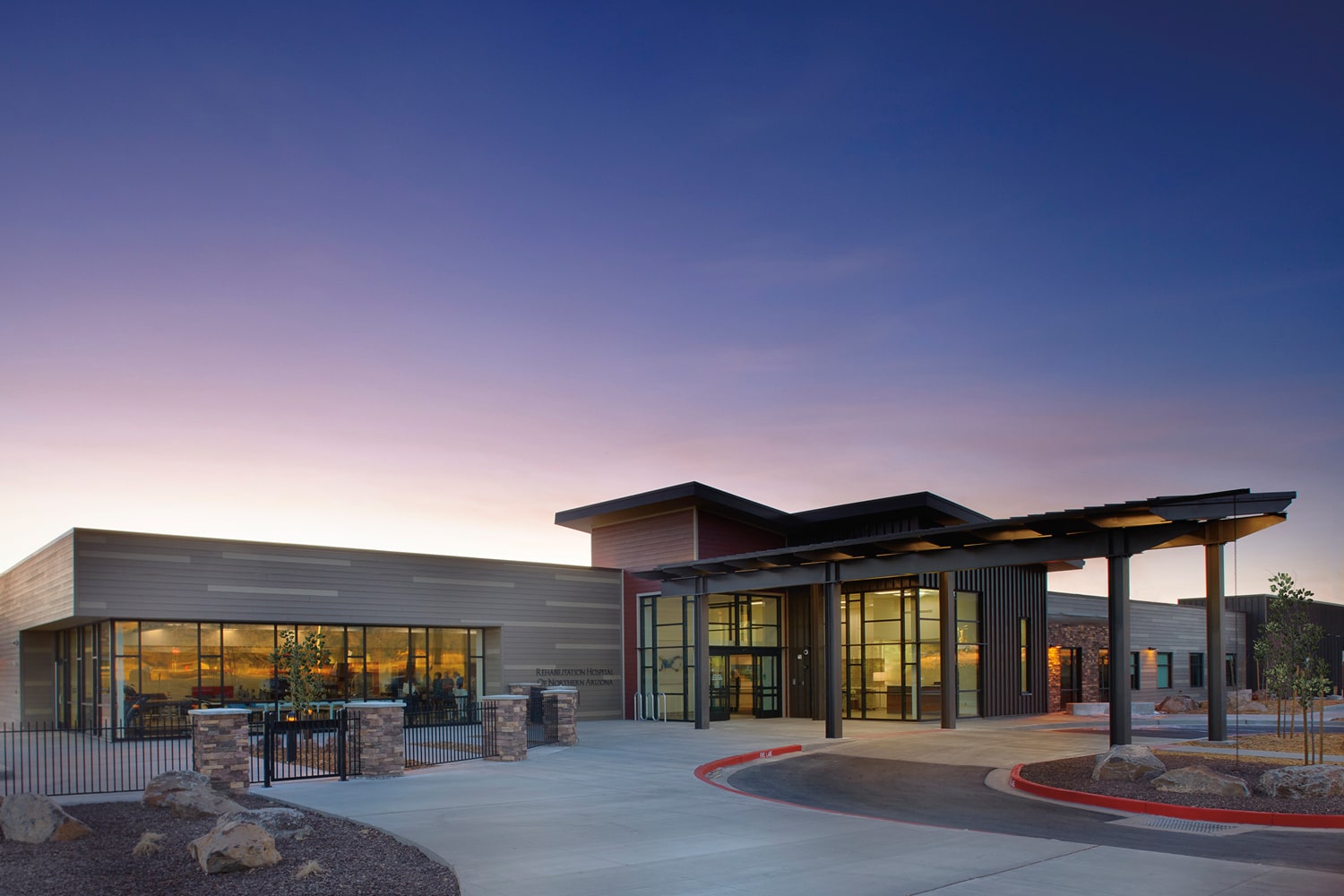 The Rehabilitation Hospital of Northern Arizona provides a high level of care and intensive rehabilitation services to patients recovering from disabling diseases and injuries. For the project, M. J. Harris expertly handled the pre-construction and construction management services of the new rehabilitation hospital. The facility’s unique, remote location required our construction team to demonstrate tenacity, undaunted problem-solving, and continuous innovation. We constructed the single-story, 40-bed steel frame hospital to specification despite immensely challenging conditions. With our careful oversight, every detail of the building specifically supports the rehabilitative needs of the hospital’s service population.