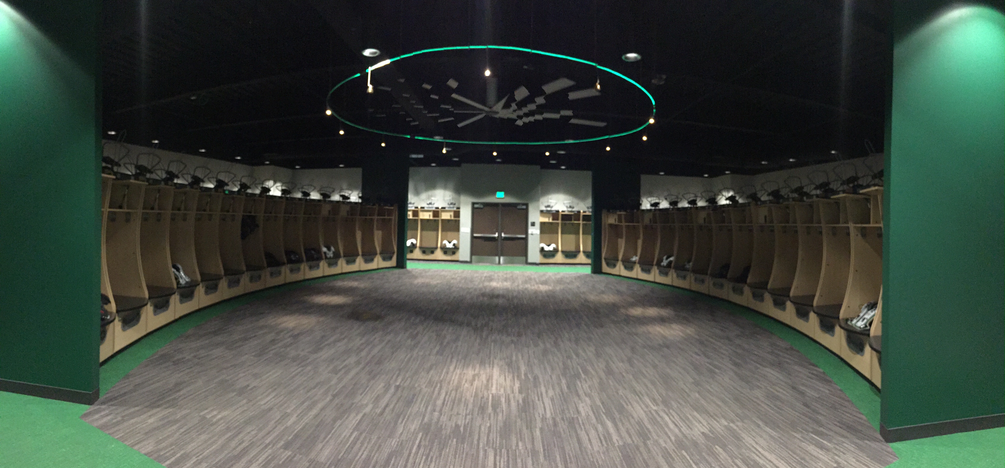 The new building houses the locker room, training room, nutrition area, weight room and a players’ lounge all on the first level, with the coaches’ offices and meeting rooms on the second level. The building also features exterior balconies that look out over the adjacent open-air covered football practice field. Without doubt this addition to the UAB campus has changed the landscape of downtown Birmingham and of the UAB Football Program.