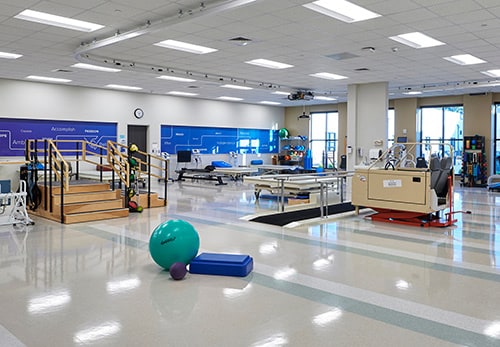 The Encompass Health Deaconess Rehabilitation Hospital provides essential therapeutic services to help patients regain independence after life-changing illnesses or injuries. M. J. Harris constructed this single-story, 80-bed replacement hospital with a focus on the patient experience. The facility features many restorative amenities, including a therapy gym, therapy courtyard, kitchen and dining spaces, administration areas, and cutting-edge rehabilitation technologies. With a well-equipped building, the hospital is now able to effectively administer powerful and intensive physical rehabilitation services to patients who need it the most