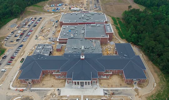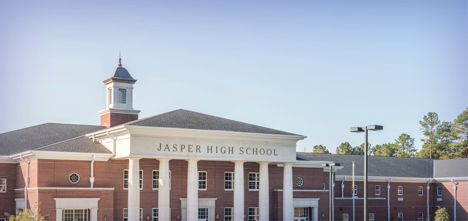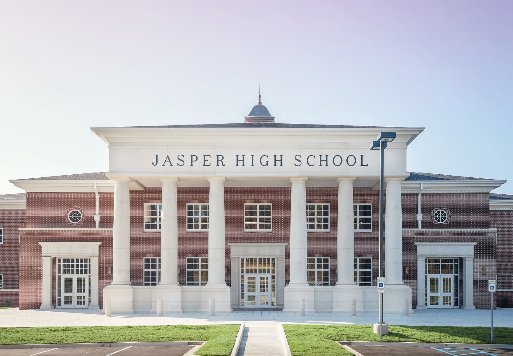 Jasper High School inspires students to achieve academic excellence through a hands-on educational approach. M. J. Harris handled the entirety of the general construction services for the new high school campus, greatly expanding learning opportunities for future generations. The new two-story building was anchored with shallow strip and spread footings on generous acres of flat land. The overall structure was designed with load-bearing masonry walls, and the second floor was comprised of hollow core concrete planks. Brick veneer was selected to adorn the envelope for a classic finish. Light gauge trusses with asphalt shingle roofing covered the classroom portion of the building while joist and metal deck with EPDM roofing covered the auditorium, cafeteria, and gyms. The robust HVAC system was contained in the upper level attic area away from view. For the safety and protection of students, M. J. Harris constructed two multi-purpose tornado shelters. The fortified spaces function as a band room and locker room on a day-to-day basis. Our team’s specialized, meticulous approach ensured the highest standards of excellence in every facet of construction. The ultimate goal was to create a long-lasting facility where young people could be equipped and empowered through education. And we accomplished it.